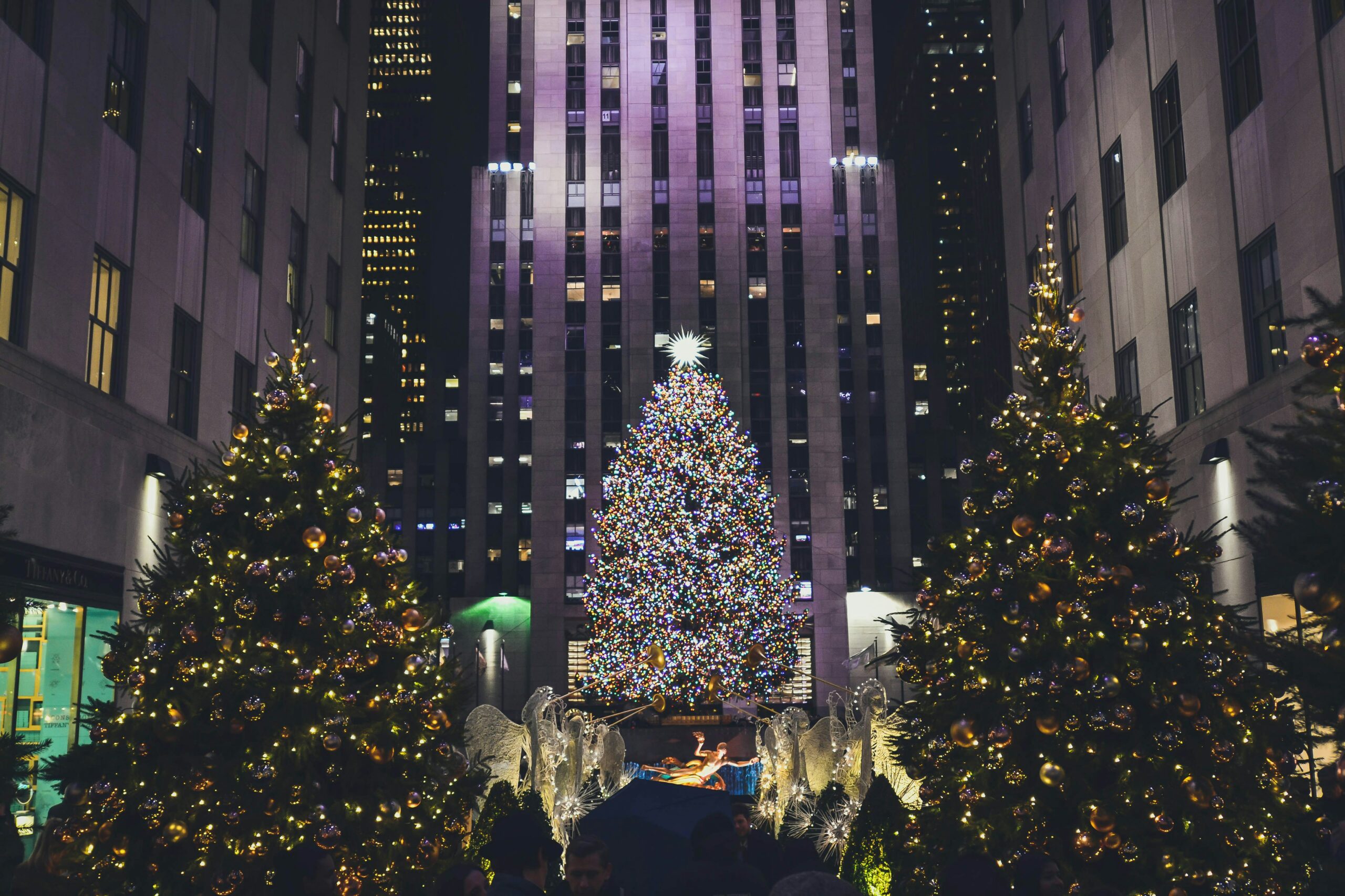 屹立於美國紐約洛克斐勒中心的聖誕樹,被公認為全球最具標誌性的節日象徵。這項傳統始於一九三一年大蕭條時期,當時建築工人豎立了一棵樸素的小樹。時至今日,這棵挪威雲杉通常高達二十一至三十米,裝飾著數萬盞LED燈和一顆施華洛世奇水晶星。
